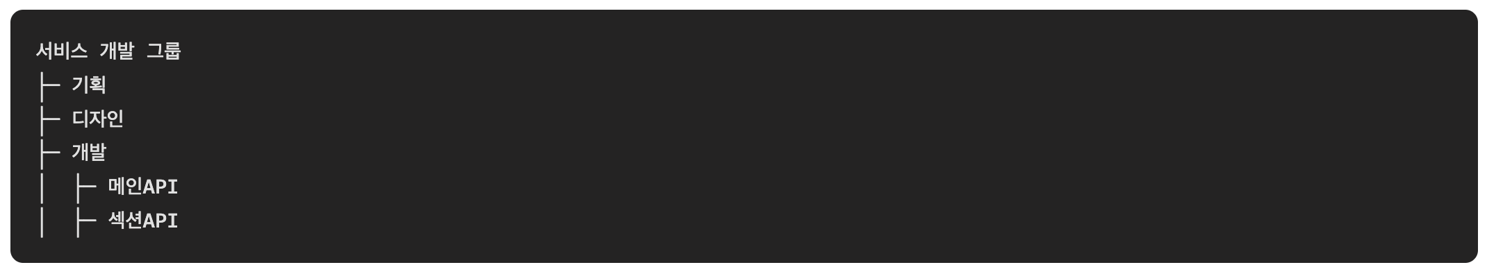 위와 같은 정보구조도가 있다면 기획 책무의 컴포넌트 설계가 굉장히 쉬워진다. 네이밍도 구조화된 상태 그대로 사용하면 되며, 각 컴포넌트별 단일한 책무를 가지게끔 만들기에 수월해진다. 이렇게 기획 단계에서 단위와 네이밍을 맞추며, 이 구조도를 토대로 상세 기획서를 작성하여 미스커뮤니케이션을 줄이고 각 컴포넌트별 요구 사항과 테스트 코드 작성 문제도 자연스럽게 해결이 된다. 이렇게 기획 책무 하나만 담당하는 컴포넌트를 만들 수 있다.