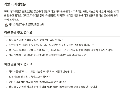 개인적으로 관심있는 기술들을 찾아 공부해보는 것도 좋지만 사내에서 주제를 선정해서 관심있는 인원들끼리 스터디를 진행하고 사내 프로젝트에도 적용해보는 것도 좋음