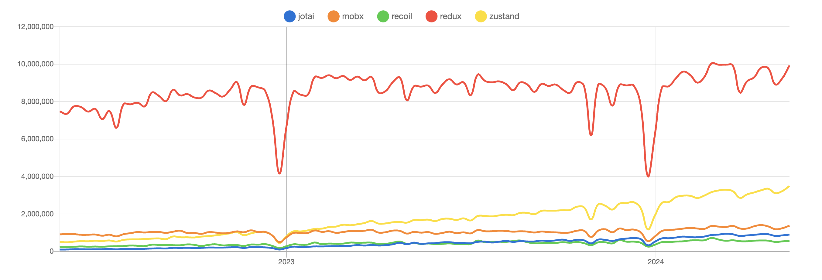 npm trends에 따르면 redux 다음으로 가장 핫한 상태관리 라이브러리,