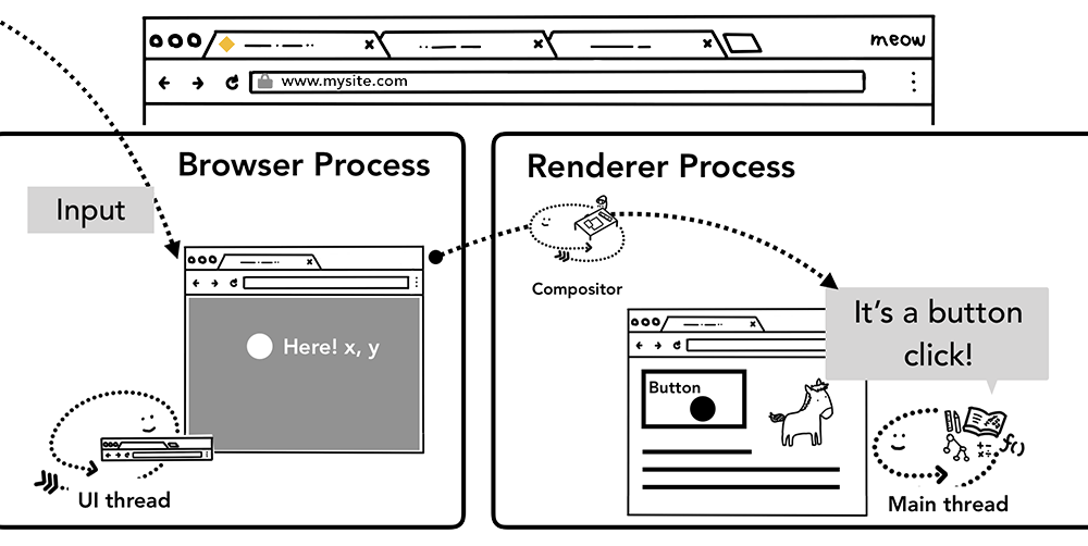 브라우저 프로세스를 통해 렌더러 프로세스(Renderer Process)로 라우팅되는 입력 이벤트