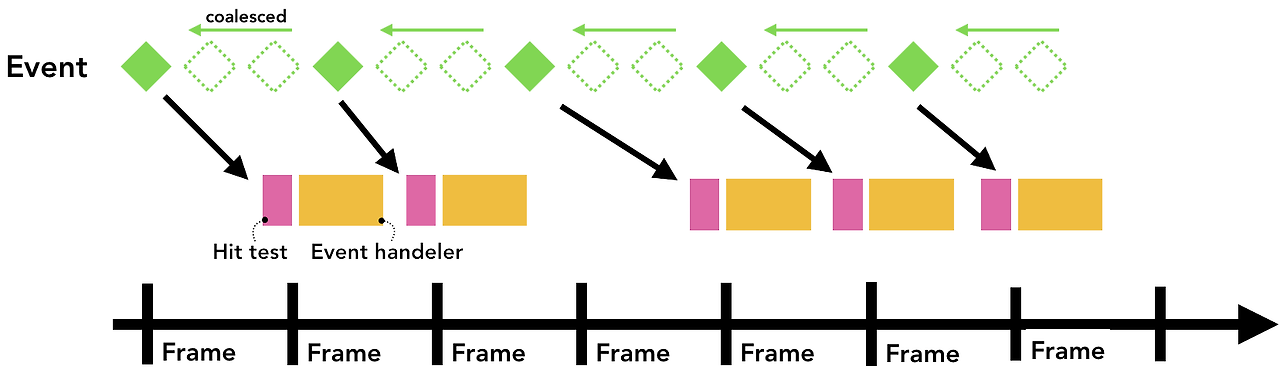 ▶ 한 프레임 안에서 합쳐진 이벤트(intra-frame events)를 얻으려면 getCoalescedEvents() 메서드를 사용한다