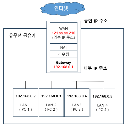 유무선 공유기가 곧 게이트웨이는 아니지만 유무선 공유기는 게이트웨이의 역할을 하는 대표적인 장비 중의 하나