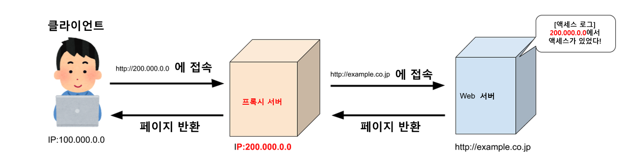 서버와 클라이언트 사이에 중계기로서 대리로 통신을 수행하는 것을 가리켜 프록시, 그 중계 기능을 하는 것을 프록시 서버라고 부름. 즉 클라이언트와 서버의 중간에 위치하고 있어 대신 통신을 받아 주는것이 프록시 서버