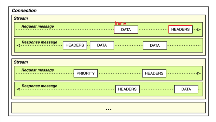 - 프레임은 각 요청의 스트림을 통해 전달