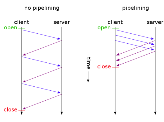 여러 요청을 연속적으로 보내 그 순서에 맞춰 응답을 받는 방식으로 지연 시간을 줄임
